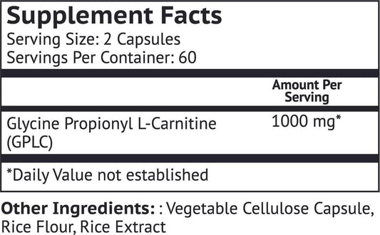GlycoTrax GPLC Extra Large Bottle - 120 Capsules of High-Absorption Glycine Propionyl-L-Carnitine with No Artificial Fillers - Glycine Propionyl L Carnitine Supplement
