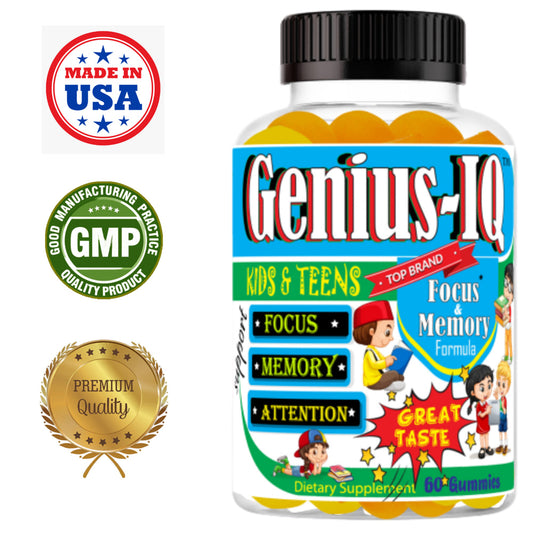 Genius-Iq Kids Brain Focus Memory Support Supplement, Focus Gummies for Kids & Teens 60 Count