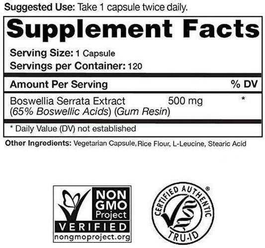 Boswellia Serrata Extract (65% Boswellic Acids) Supplement - 120 Capsules, 2 Month Supply