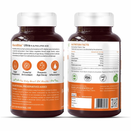 Bliss Welness Alpha Lipoic Acid 300Mg | Natural & Pure R Type ALA | Universal Antioxidant Liver Health Energy Booster Blood Sugar Management Supplement - Pack of 60 Veget