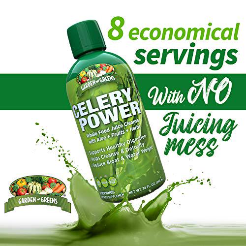 Garden Greens Celery Power Whole Food Juice Cleanse, with Aloe, Fruits and Herbs, Supports Healthy Digestion, Supports Cleanse and Detox, Reduce Bloat and Water Weight, 32 Fl Oz