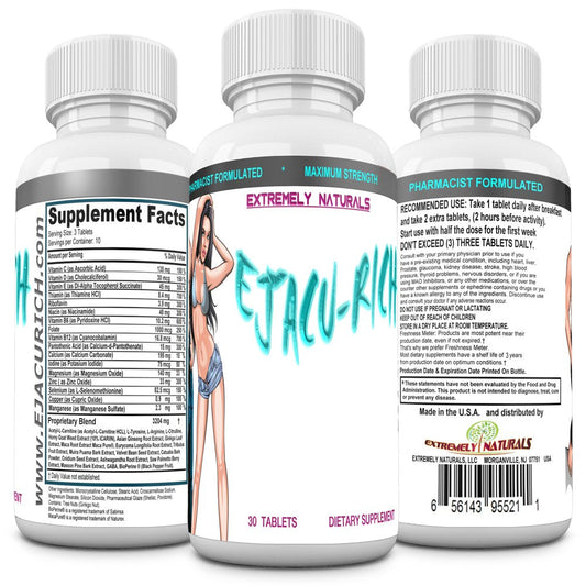 Ejacu-Rich for Males & Females. Testosterone Booster. Load Volumizer. Naturally Increases Energy, Volume & Performance. 30 Pills