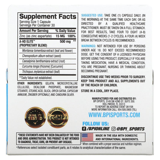 BPI Sports A-HD Elite, 500 Mg, 30 Capsules