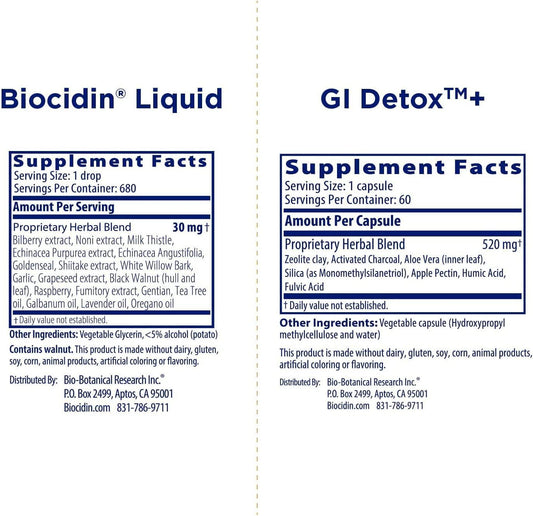 Biocidin Liquid Formula (1 oz) with GI Detox+ Gentle Binder (60 Capsules) - Two-Product Detox Bundle to Support GI Detox, Cleansing and Healthy Digestion - Assists in Toxin and Biofilm Removal