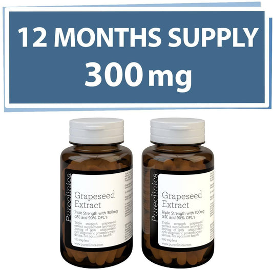 Grape Seed Extract - 300mg x 360 Tablets - 90% Oligomeric Proanthocyanidins. Don't Settle for The Much Weaker 50% OPC or 100mg Tablets. SKU: GSE3x2
