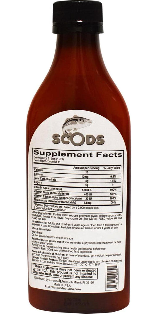 Emulsion de Scods Frutas Tropicales Cod Liver Oil Emulsion Tropical Fruits 200ml Vitamin A + D + E and B1