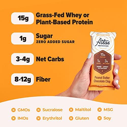 Atlas Mind + Body Keto Protein Bar - Peanut Butter Chocolate Bundle - Low Carb Protein Bars - High Fiber Bars - Low Sugar Meal Replacement Bars - Organic Ashwagandha (20 Count)