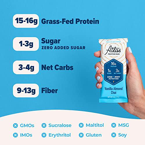 Atlas Mind + Body Keto Protein Bar - Vanilla Almond Chai + Ultimate Variety Keto Bars - Low Carb Protein Bars - High Fiber Bars - Low Sugar Meal Replacement Bars - Organic Ashwagandha (20 Count)