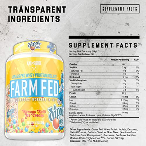 Axe and Sledge Supplements Farm Fed Grass-Fed Whey Protein Isolate, Digestive Enzymes, 22 Grams Protein, 30 Servings (Dippin' Dots Banana Split Ice Cream)