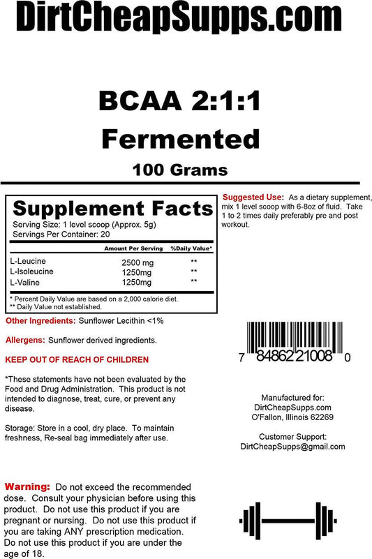 DirtCheapSupps BCAA's Amino Acid powder-100g yielding 20 Servings-(Fermented and Instantized) Vegan Unflavored BCAA Powder