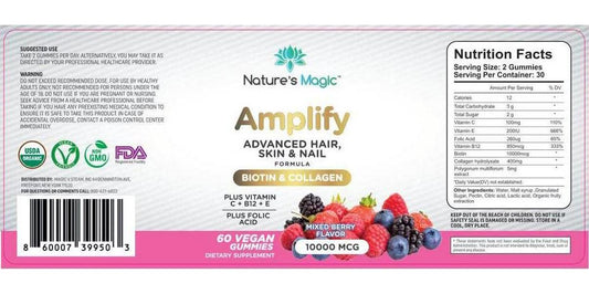 Amplify Advanced Hair, Skin and Nail Formula with 10,000 MCG Vegan Gummies Highest Potency Biotin and Collagen Plus Vitamin C, E, B-12 and Folic Acid