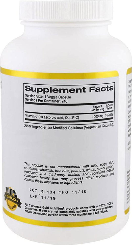California Gold Nutrition Gold C Vitamin C 1 000 mg 240 Veggie Capsules