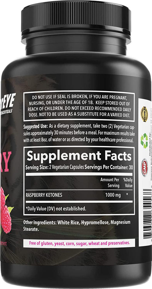 100% Pure Raspberry Ketones ISO 17025 Lab Certified - Zero Artificial Ingredients or Fillers, Extra Strength, Gluten-Free, 60 Vegetarian Capsules - Made in USA - Tigereye Nutraceuticals