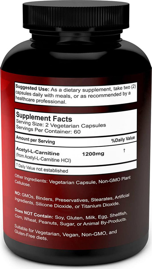 Acetyl L-Carnitine Capsules 1200mg Per Serving - L Carnitine Supplement 120 Vegetarian Capsules
