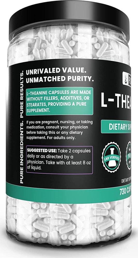 100% Pure L-Theanine |730 Capsules |2-Year Supply |No Magnesium or Rice Filler, Vegetarian, 355mg, Made in The USA, Potent, Gluten-Free and Undiluted L-Theanine with No Additives