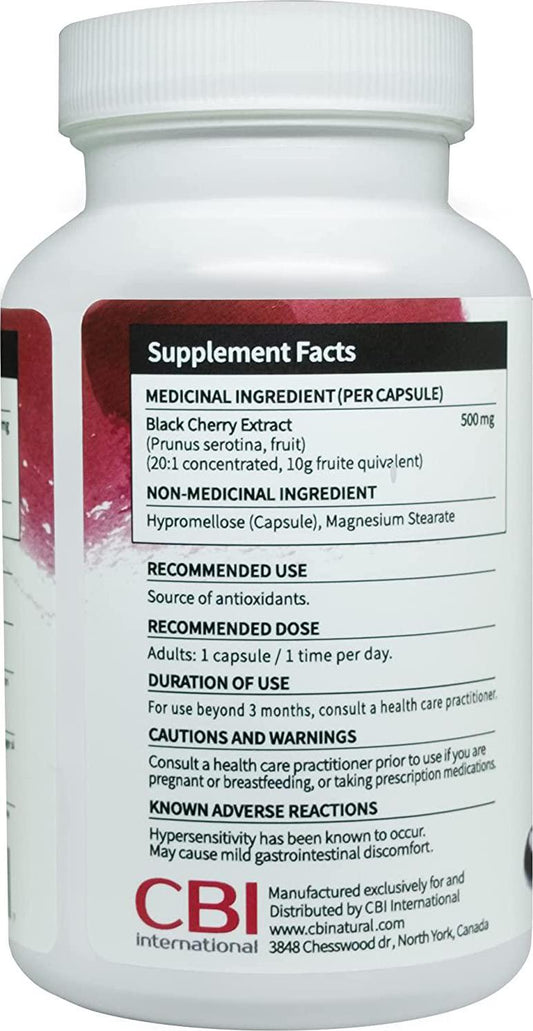 20:1 Concentrate Black Cherry 500mg 120 Caps,Maximum Concentrate, Vegetarian, Non-GMO,Gout Relief Supplement