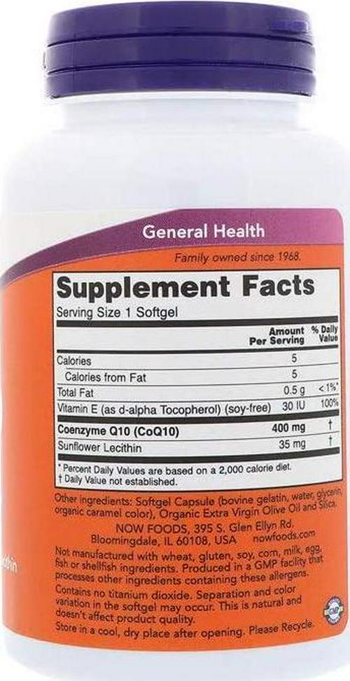 NOW Supplements, CoQ10 400 mg, Pharmaceutical Grade, All-Trans Form produced by Fermentation, 60 Softgels