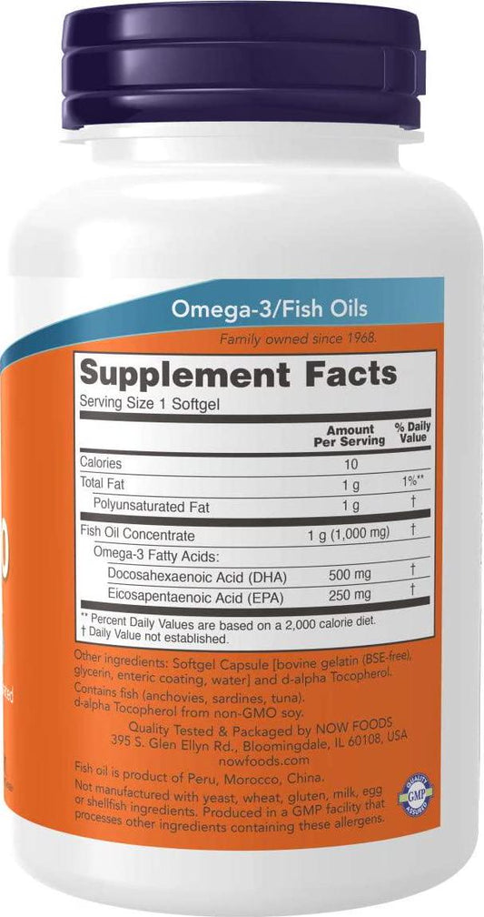 NOW Supplements, DHA-500 with 250 EPA, Molecularly Distilled, Supports Brain Health*, 90 Softgels