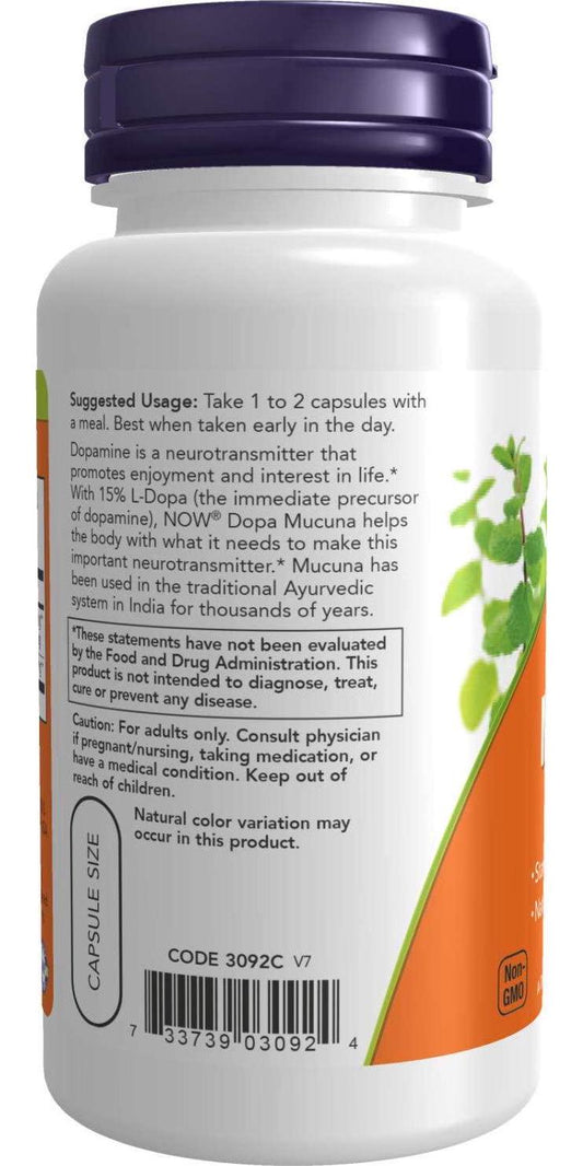 NOW Supplements, DOPA Mucuna, Standardized Mucuna Extract with Naturally Occurring 15% L-Dopa, 90 Veg Capsules