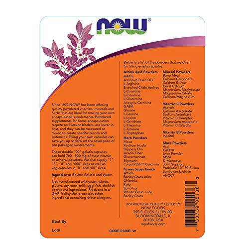 NOW Supplements, Empty Gelatin Capsules, Double 00 , Bovine Sourced, Filled by Weight, 250 Gel Capsules