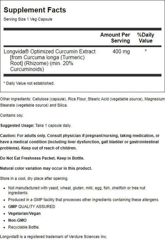 NOW Supplements, Curcubrain™ 400 Mg with Longvida® Optimized Curcumin, 50 Veg Capsules