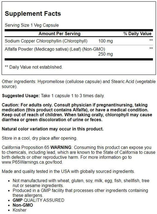 NOW Supplements, Chlorophyll 100 Mg with Alfalfa Powder, Green Superfood, 90 Veg Capsules