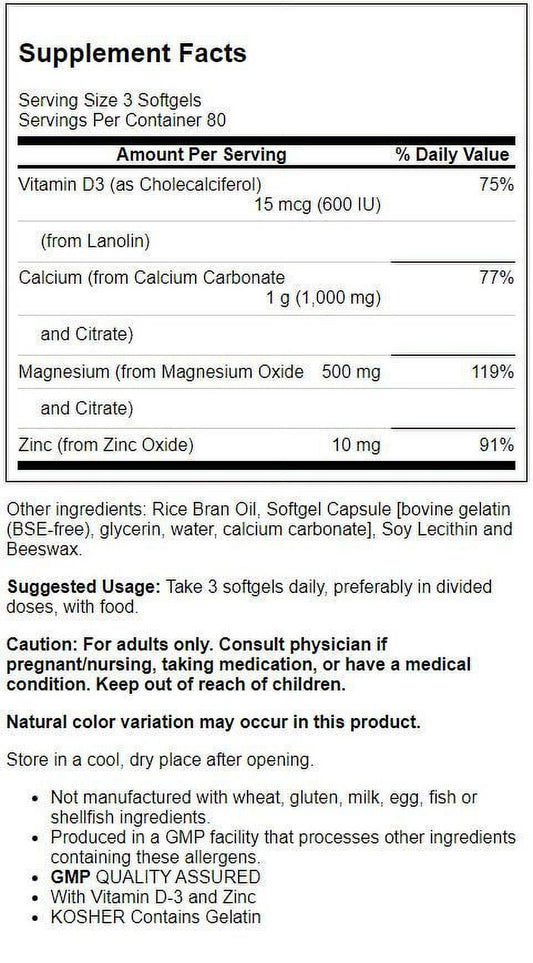 NOW Supplements, Calcium & Magnesium with Vitamin D-3 and Zinc, Supports Bone Health*, 240 Softgels