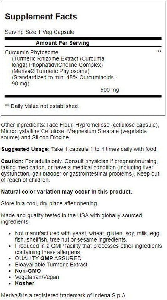 NOW Supplements, Curcumin Phytosome, Bio-Enhanced Turmeric Extract, 60 Veg Capsules