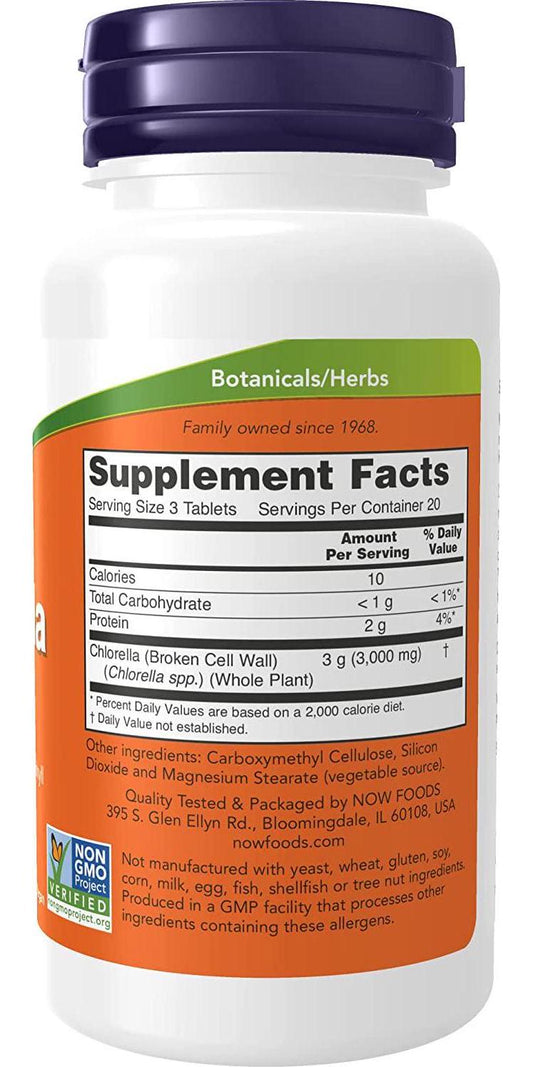 NOW Supplements, Chlorella 1000 mg with naturally occurring Chlorophyll, Beta-Carotene, mixed Carotenoids, Vitamin C, Iron and Protein, 60 Tablets