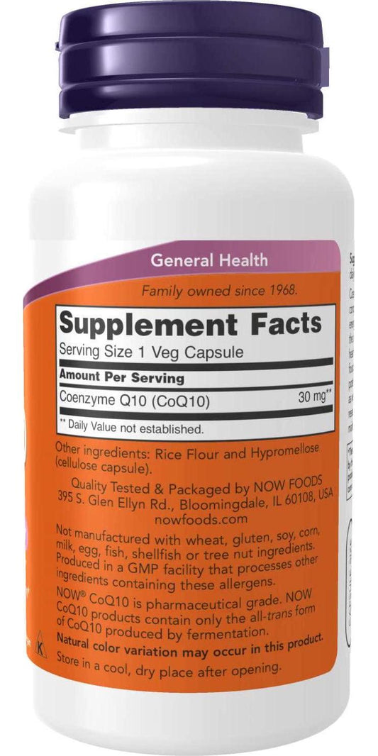 NOW Supplements, CoQ10 30 mg, Pharmaceutical Grade, All-Trans Form produced by Fermentation, 120 Veg Capsules