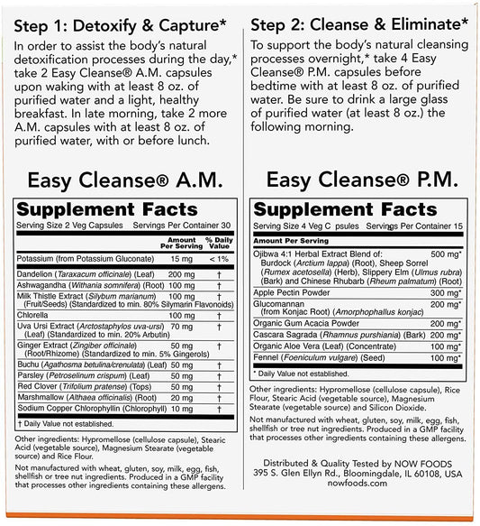 NOW Supplements, Easy Cleanse, AM/PM with unique blend of Specialized Herbs, Nutrients and Green Foods, 120 Veg Capsules