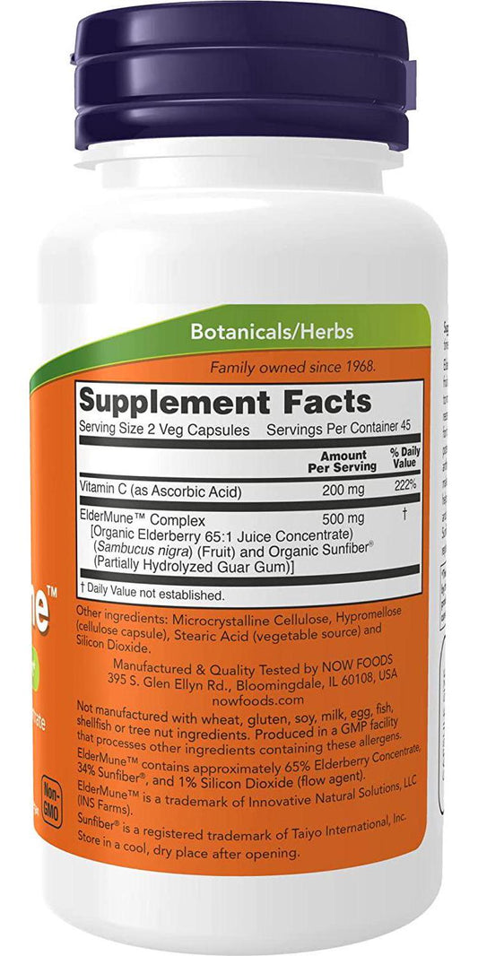 NOW Supplements, ElderMune 65:1 Elderberry Juice Concentrate With Vitamin C, Immune System Support, 90 Veg Capsules
