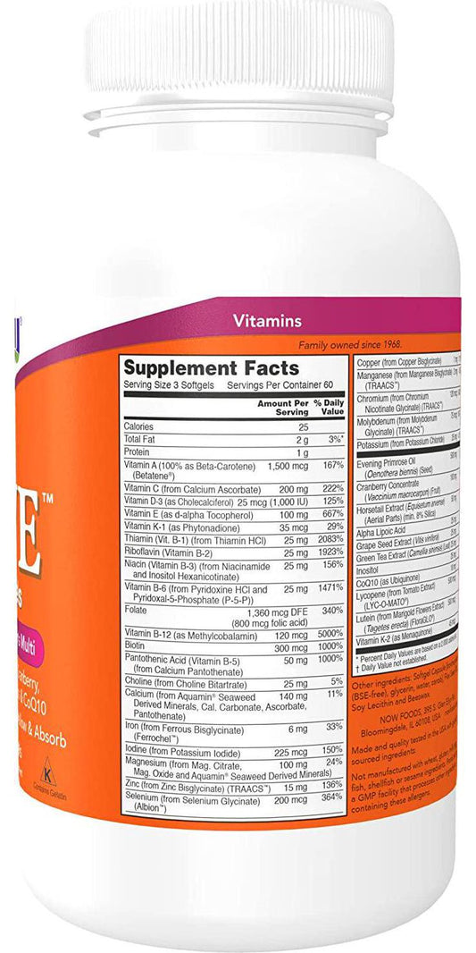NOW Supplements, Eve Women's Multivitamin with Evening Primrose, Cranberry, Green Tea, Horsetail Silica and CoQ10, 180 Softgels