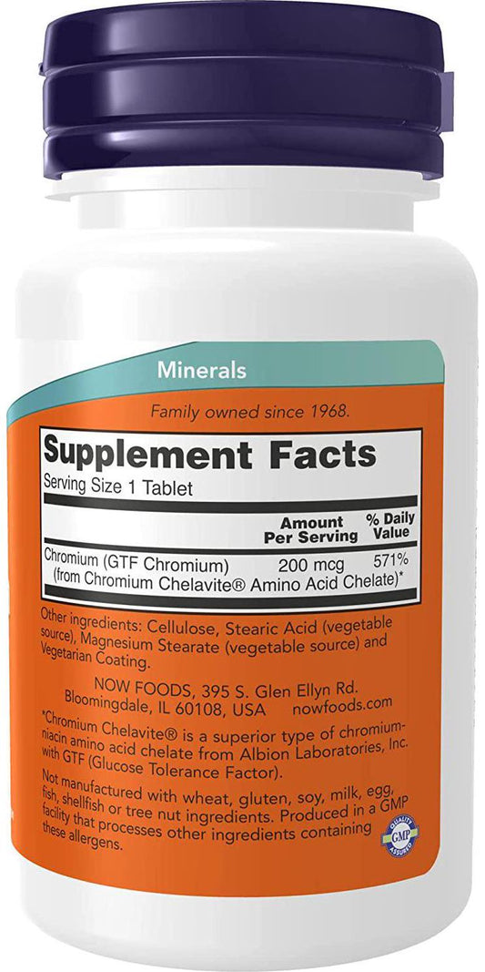NOW Supplements, GTF (Glucose Tolerance Factor) Chromium 200 mcg, 100 Tablets