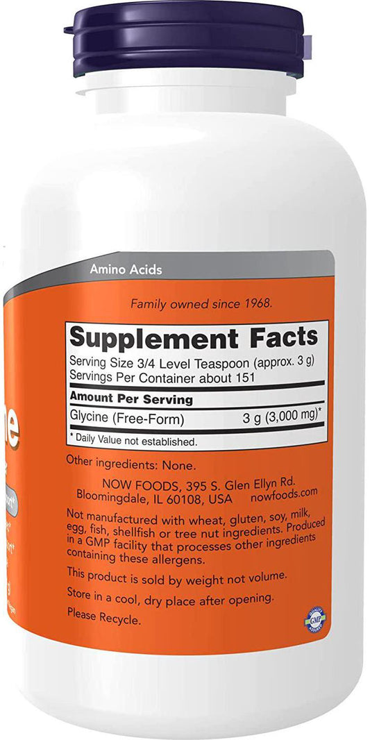 NOW Supplements, Glycine Pure Powder, Promotes Restful Sleep*, Neurotransmitter Support*, 1-Pound