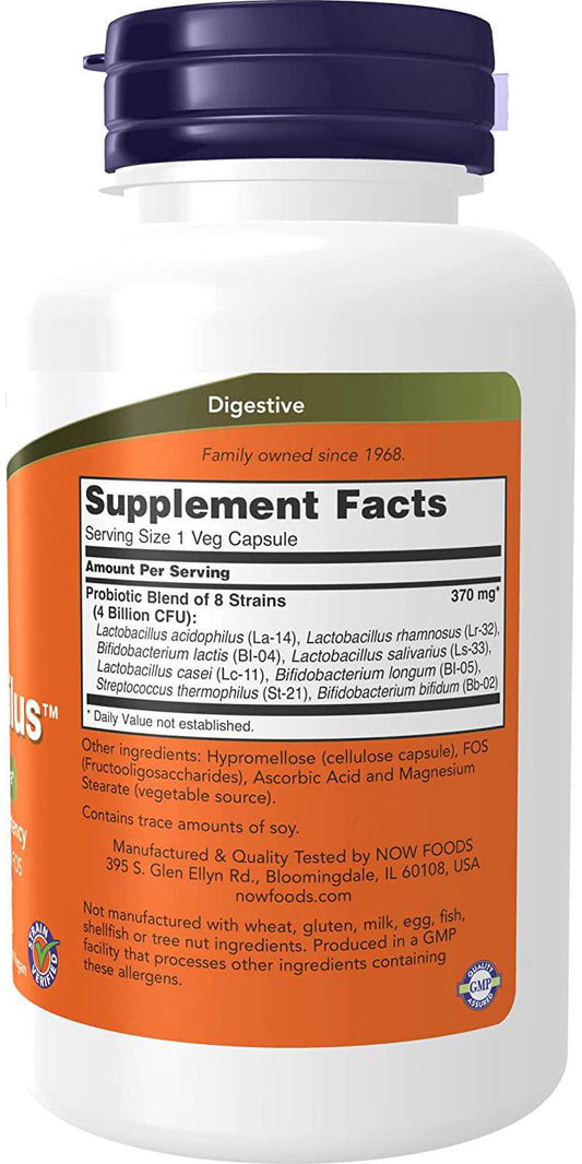 NOW Supplements, Gr8-Dophilus with 8 Strains and 4 Billion Potency, Shelf Stable, 120 Veg Capsules