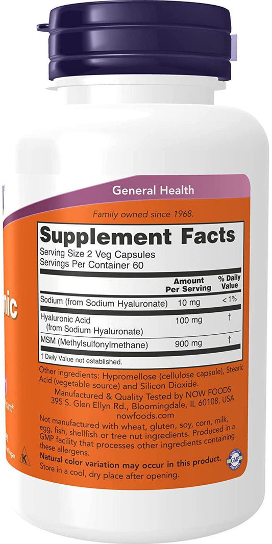 NOW Supplements, Hyaluronic Acid 50 Mg with MSM, Joint Support*, 120 Veg Capsules