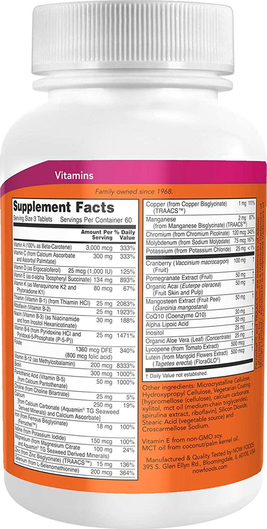 NOW Supplements, Eve Women's Multivitamin with Cranberry, Alpha Lipoic Acid and CoQ10, plus Superfruits - Pomegranate, Acai and Mangosteen, 180 Tablets