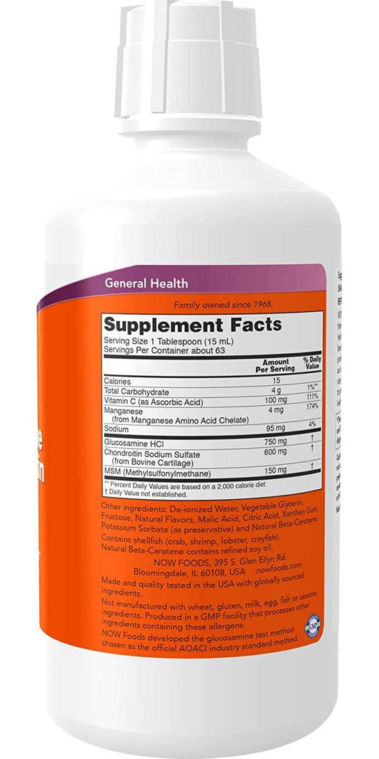 NOW Supplements, Glucosamine and Chondroitin with MSM, Liquid, Joint Health, Mobility and Comfort*, 32-Ounce