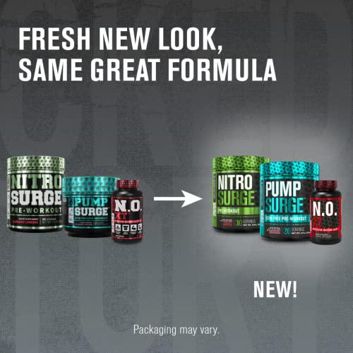 Pre Workout with Best Pump - Pumped Up Bundle: Nitrosurge Pre-Workout, Pumpsurge Caffeine Free Pre-Workout, N.O. XT Nitric Oxide Booster