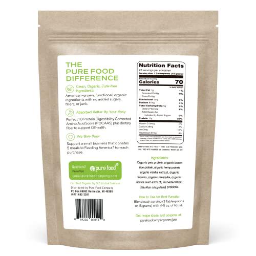 Pure Food: Plant Based Protein Powder with Probiotics | Organic, Clean, All Natural, Vegan, Vegetarian, Whole Superfood Nutritional Supplement with No Additives | Vanilla 2-Pack