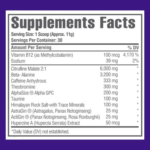 Serpent Pre-Workout Black Fire Berry 30 Servings Energy Focus Powerful Pumps Caffeine Anhydrous AlphaSize Beta-Alanin AstraGin ActiGin Alpha GPC Citrulline Malate B12 Taurine Huperzine A Theobromine