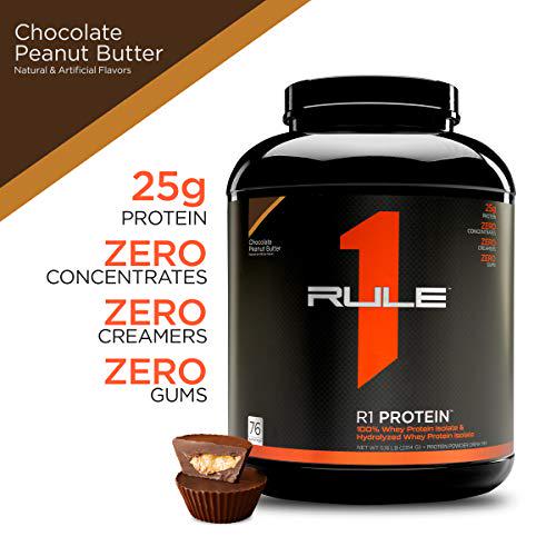 Rule One Proteins, R1 Protein - Chocolate Peanut Butter, 25g Fast-Acting, Super-Pure 100% Isolate and Hydrolysate Protein Powder with 6g BCAAs for Muscle Growth and Recovery, 5lbs (RZ0460)