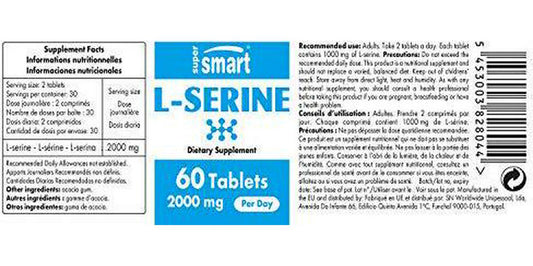 Supersmart - L-Serine 2000 mg Per Day - Brain Boost and Memory Supplement - Support Healthy Central Nervous System | Non-GMO and Gluten Free - 60 Tablets