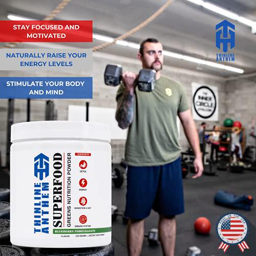 Thinline Anthem Superfood Greens Nutrition Powder (30 Servings) - Blueberry and Pomegranate Flavor Supplement - for Detox, Energy Boost, Immune Health and Better Digestion - Natural Dietary Supplement