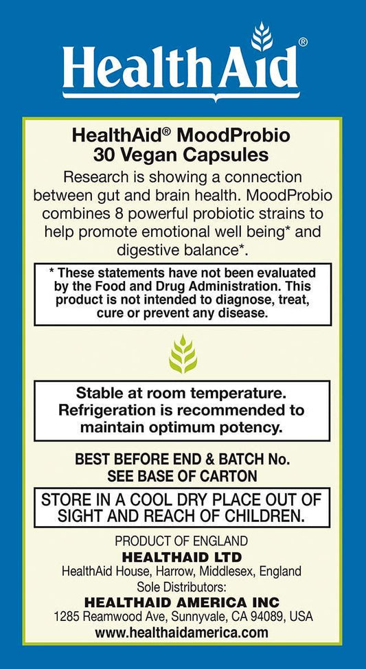 MoodProbio 30 Billion CFU With Prebiotic, Supports the Gut Brain Connection, Once Daily, Acid and Bile Resistant, Gluten, Dairy, and GMO Free, Vegan