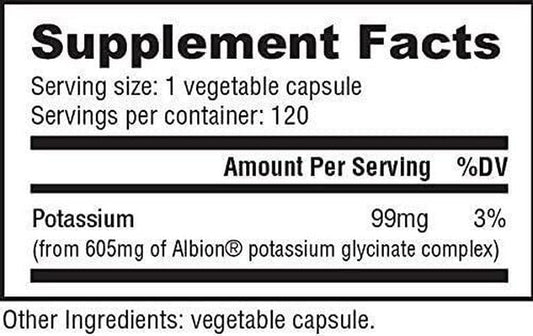 NutraBio Potassium Complex (99mg) - 120 Vegetable Capsules