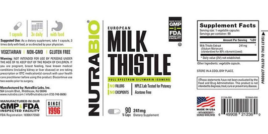 Nutrabio Milk Thistle (European) 90 Vegetable Capsules, 241mg