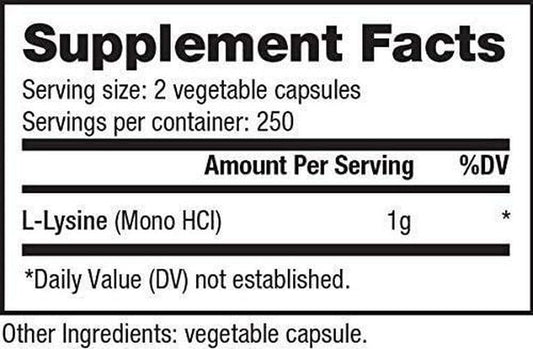 NutraBio L-Lysine (500mg) - 500 Vegetable Capsules