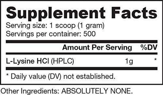 NutraBio L-Lysine Powder - Pure Grade Amino Acid - 500 Grams - Essential Amino Acid - Non-GMO - Gluten-Free - Vegan